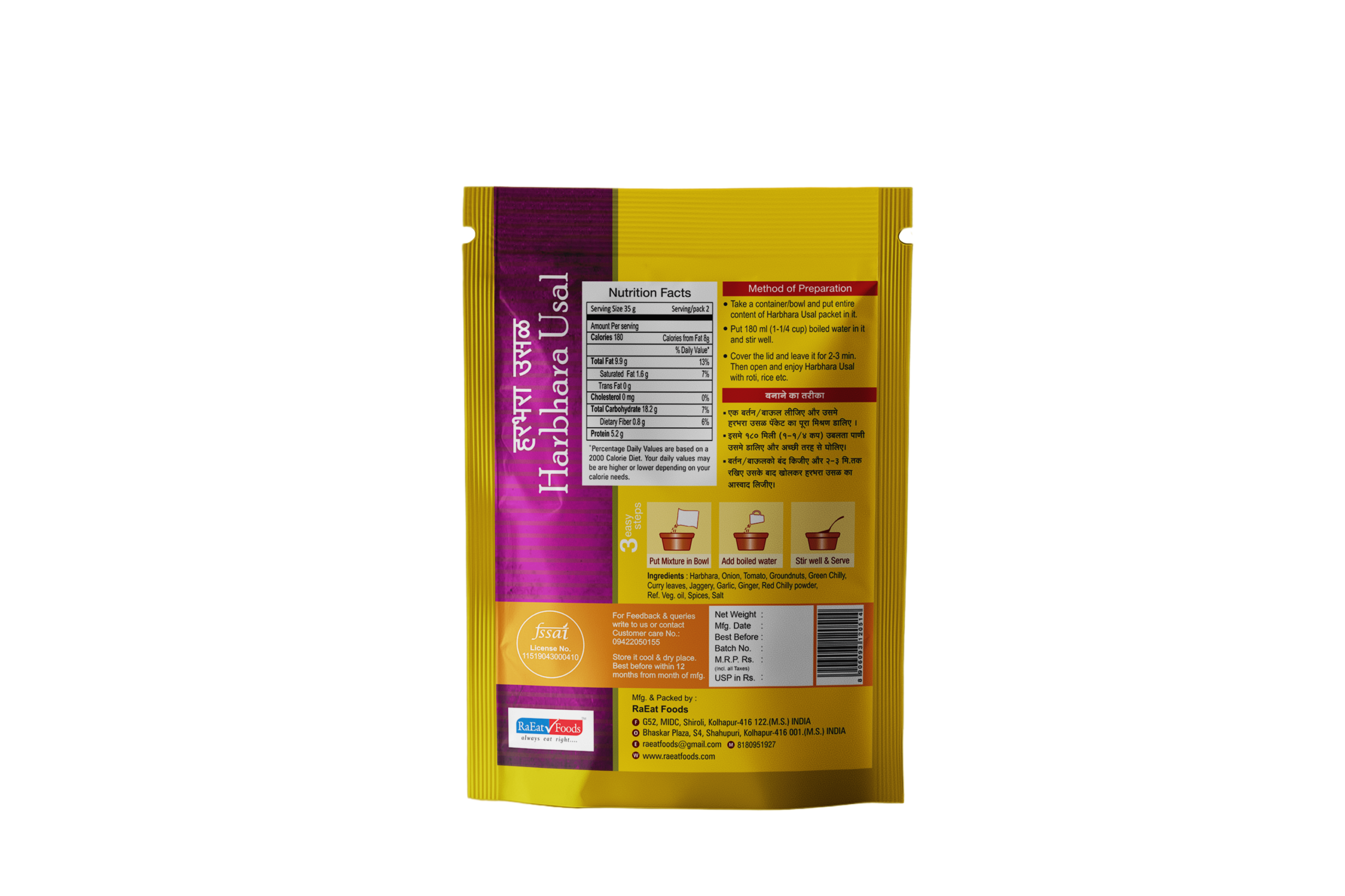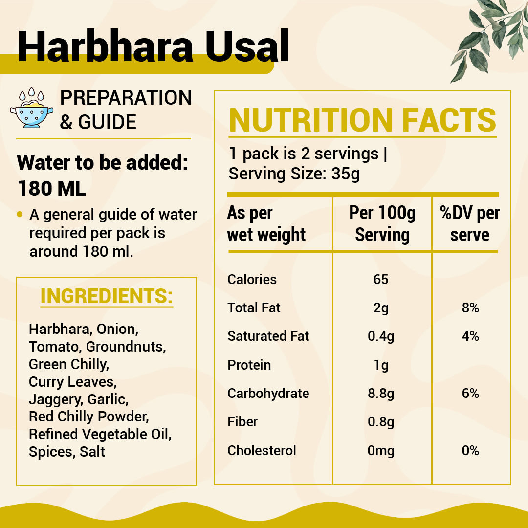 A protein-rich Maharashtrian curry made with whole harbhara cooked in traditional spices. Harbhara Usal offers a robust and slightly spicy flavour profile ideal for roti or rice meals.