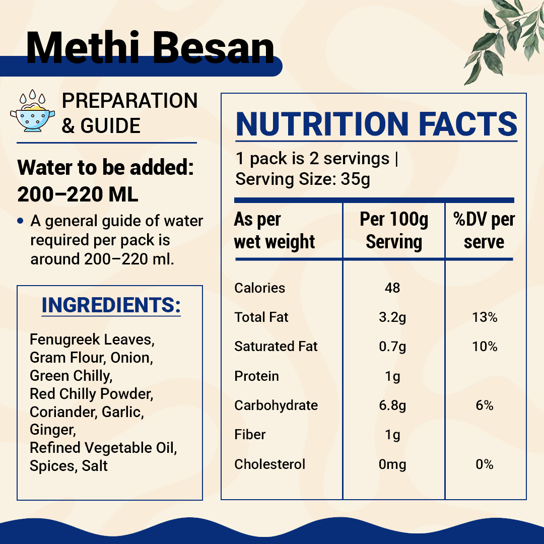 A comforting Maharashtrian-style curry made with fenugreek and gram flour. Methi Besan combines mild bitterness with rich spices, creating a perfectly balanced traditional dish.