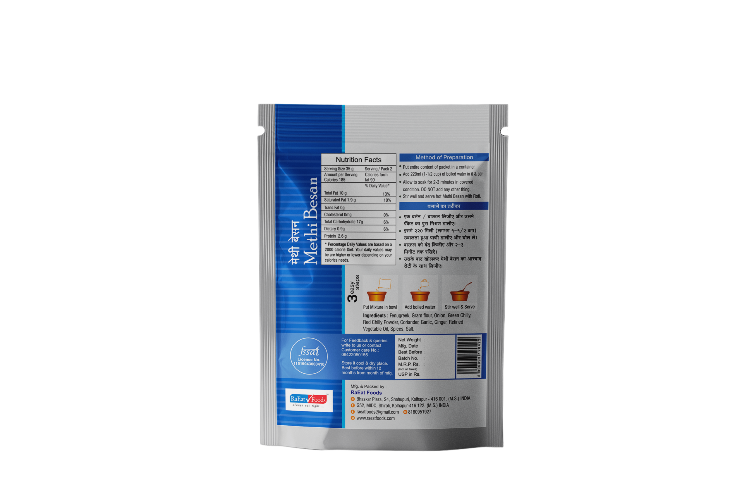 | Gram Flour | Main base ingredient that thickens the curry |