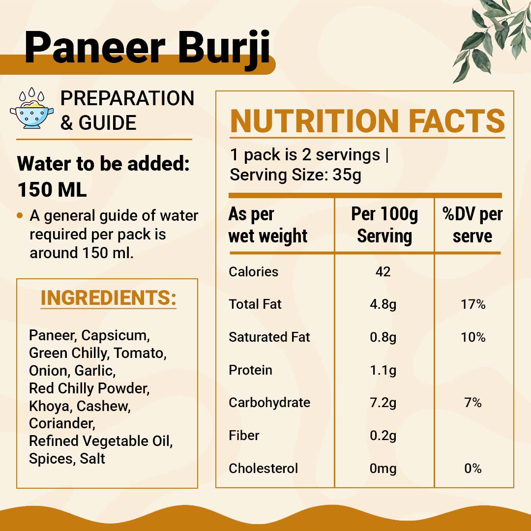 | Paneer | Crumbled cottage cheese providing rich texture |