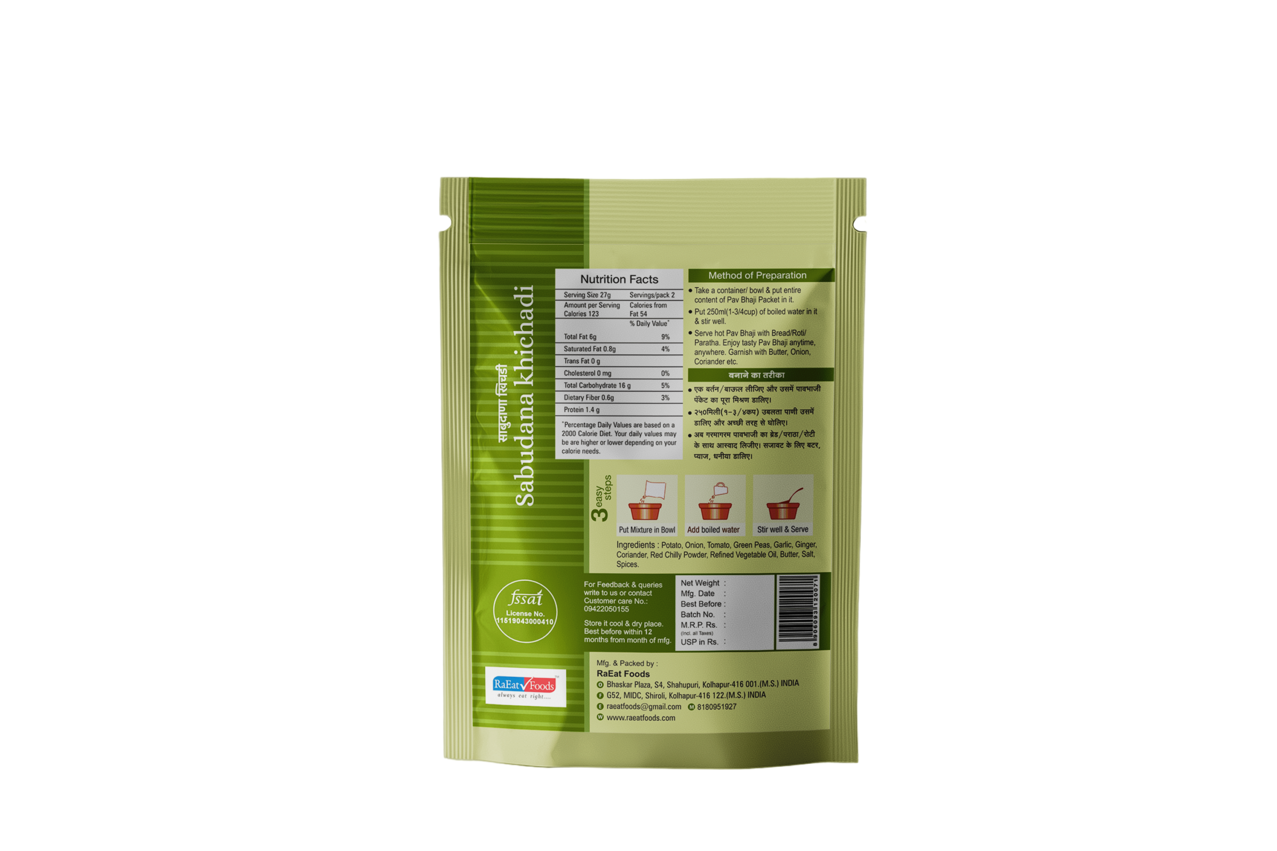 | Sabudana | Main base ingredient providing soft texture and energy |